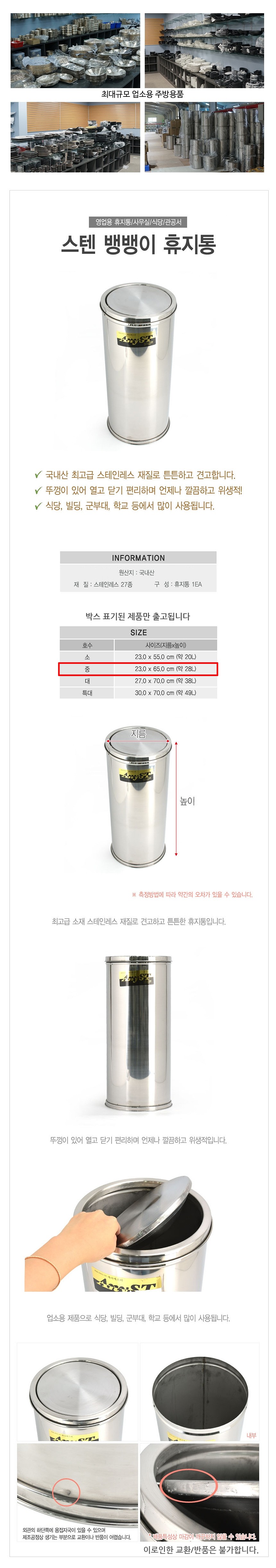 업소용 스텐 야외 뱅뱅이 휴지통 중 28L