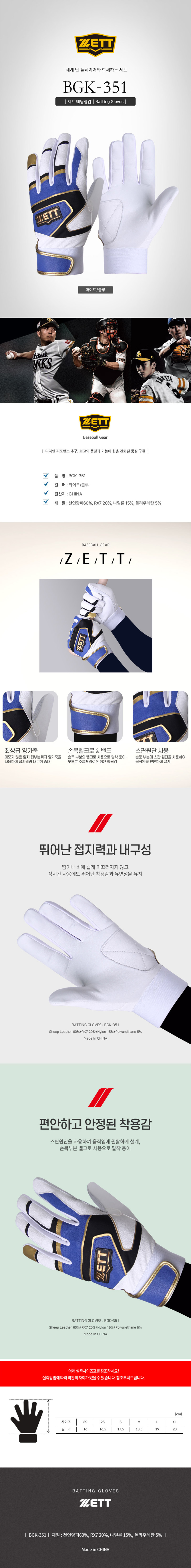 제트 야구 배팅장갑 BGK-351 화이트 블루
