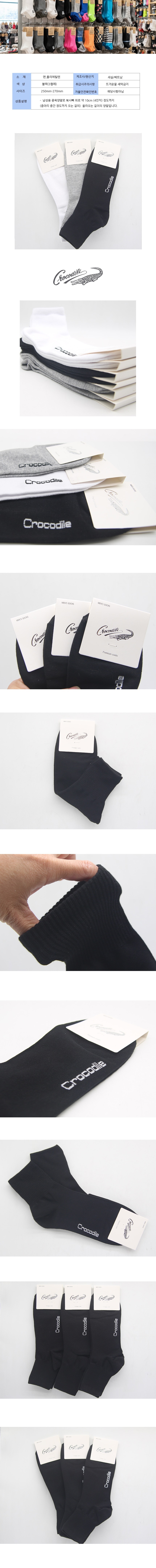 크로커다일 남성 무지 중목양말 블랙 3켤레