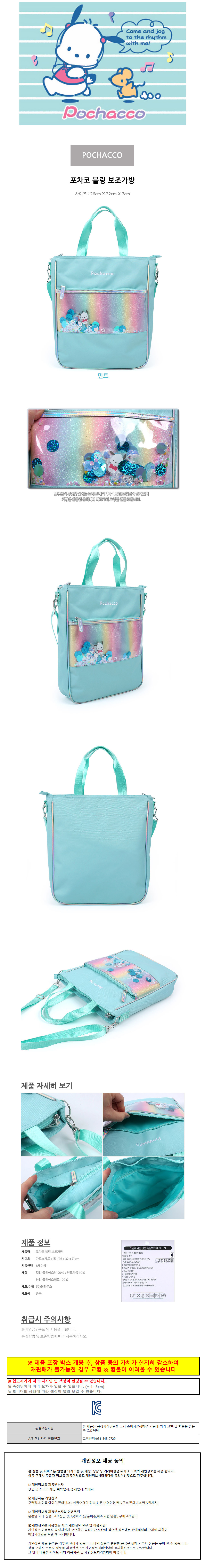 윙하우스 학생보조가방 포차코 블링 보조가방 실내화 주머니 신발주머니