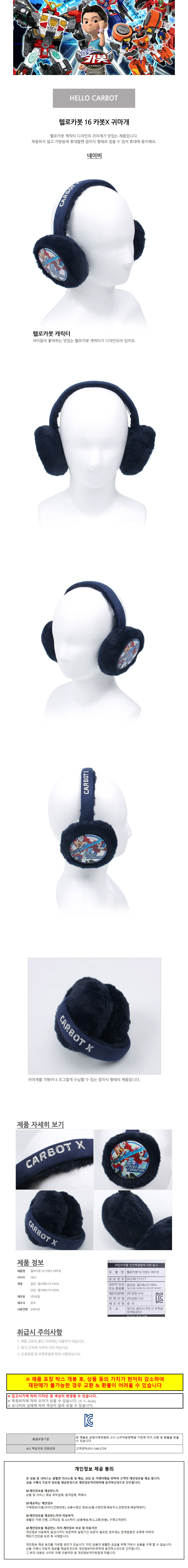 성창 방한용품 헬로카봇16 카봇 X 귀마개 어린이 아동