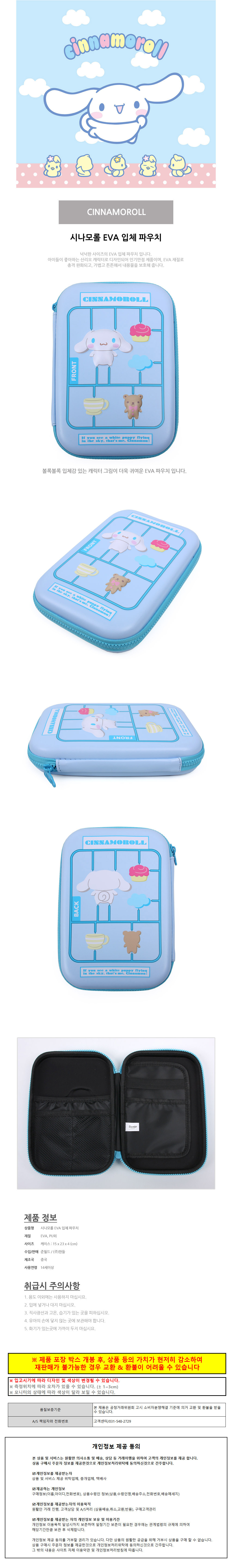 한들 소품가방 시나모롤 EVA 입체 파우치 화장품 파우치백