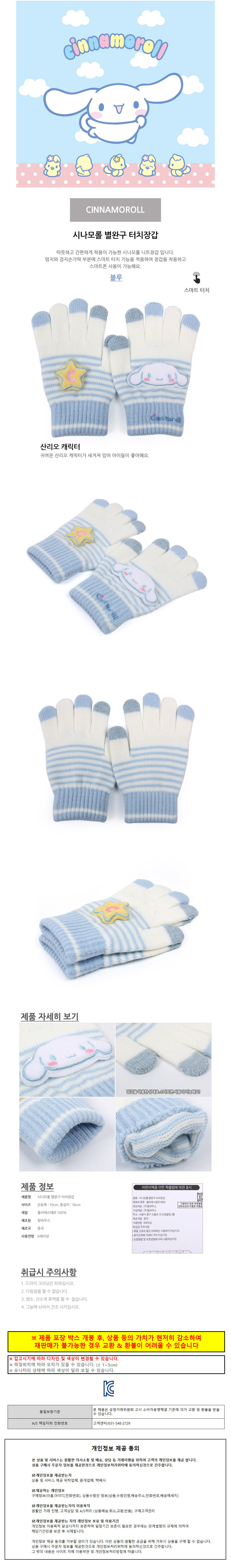 윙하우스 방한장갑 시나모롤 별완구 터치 장갑 아동 어린이 예쁜장갑
