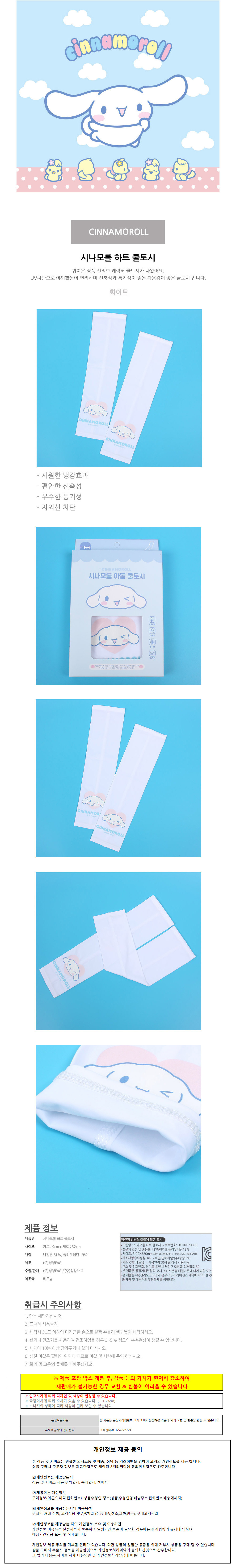 성창 여름쿨토시 시나모롤 하트 쿨토시 기능성 여성쿨토시 아동 등산 캐릭터쿨토시