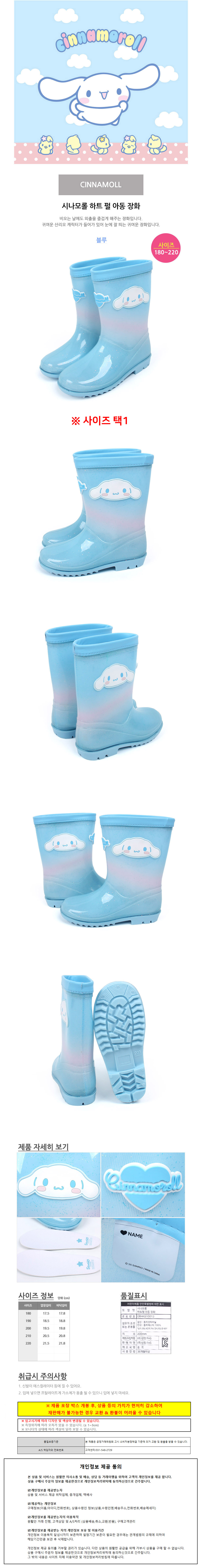 성창 아동장화 시나모롤 하트펄 아동 레인부츠 (택1) 어린이 캐릭터 장화