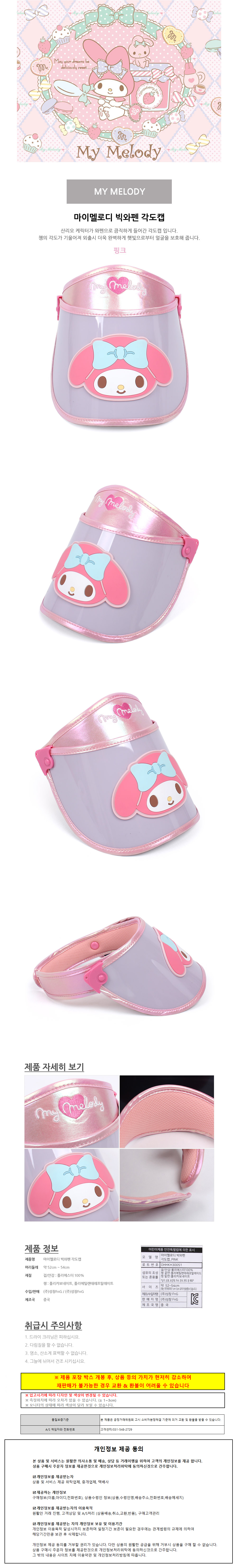 성창 아동모자 마이멜로디 빅와펜 각도캡 어린이모자 아동썬캡 캐릭터썬캡
