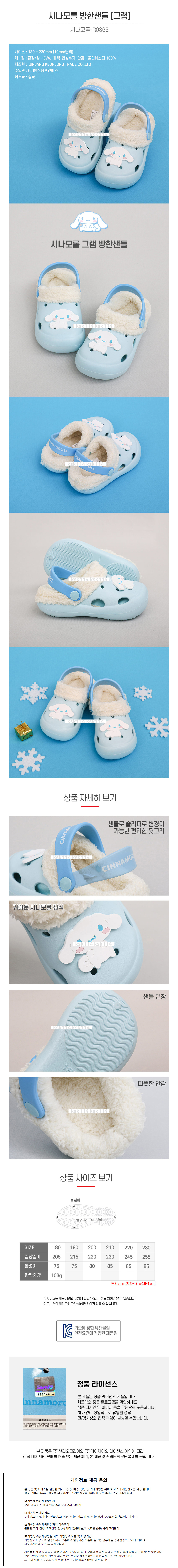 명신 털실내화 시나모롤 그램 방한 아동 샌들 (택1) 학생실내화