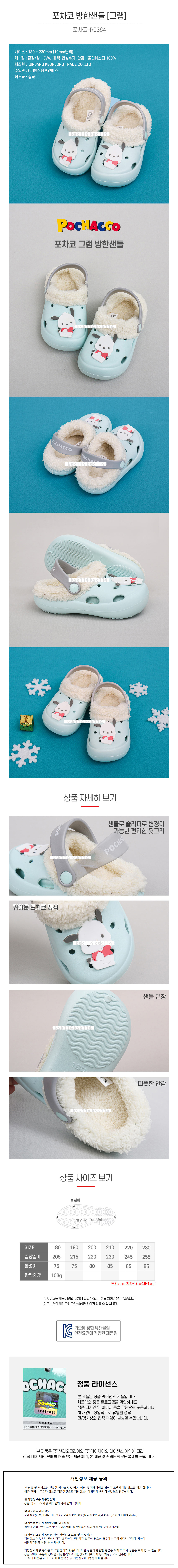 명신 털실내화 포차코 그램 방한 아동 샌들 (택1) 학생실내화