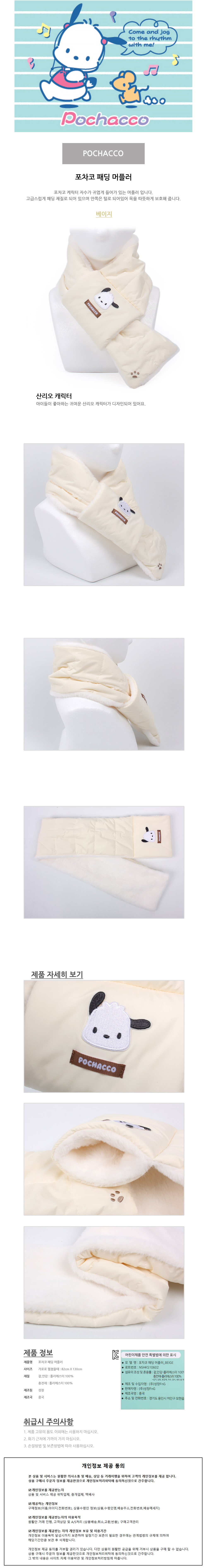 성창 머플러 포차코 패딩 캐릭터 아동머플러 목도리 방한머플러