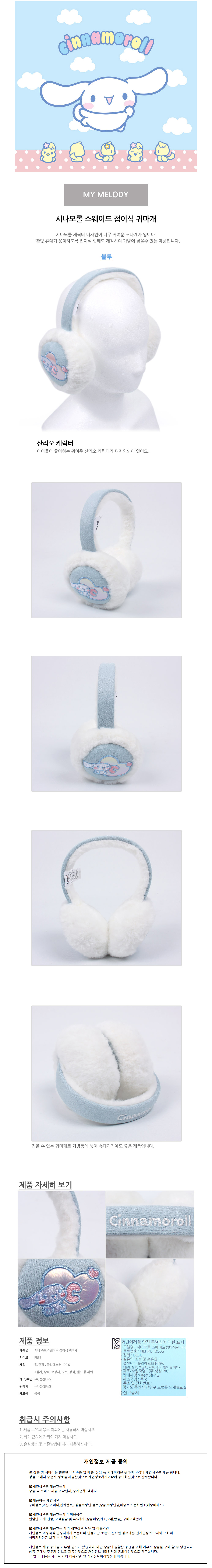 성창 귀마개 시나모롤 스웨이드 접이식 캐릭터 아동귀마개 방한귀마개
