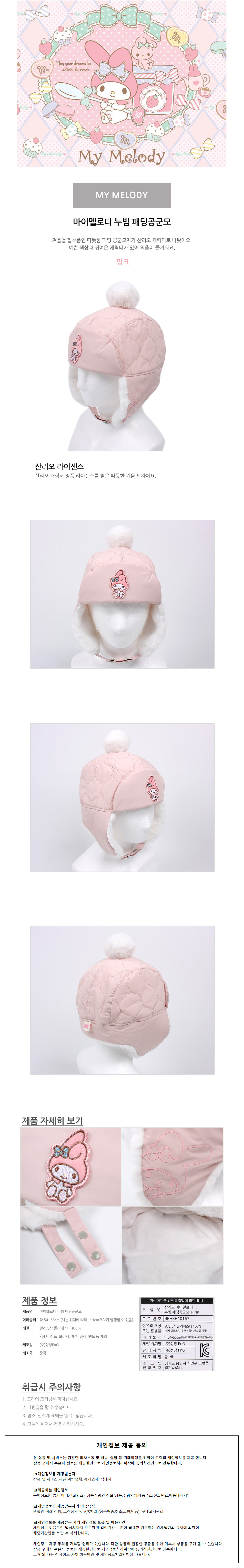 성창 모자 마이멜로디 누빔 패딩 공군모 캐릭터 아동모자 방한모