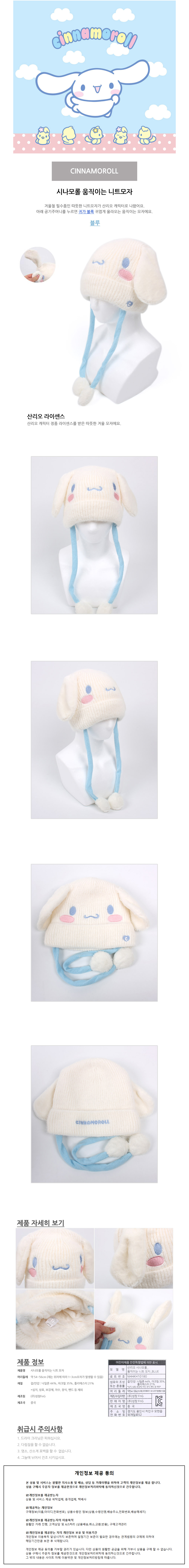 성창 모자 시나모롤 움직이는 캐릭터 아동 니트모자 방한모