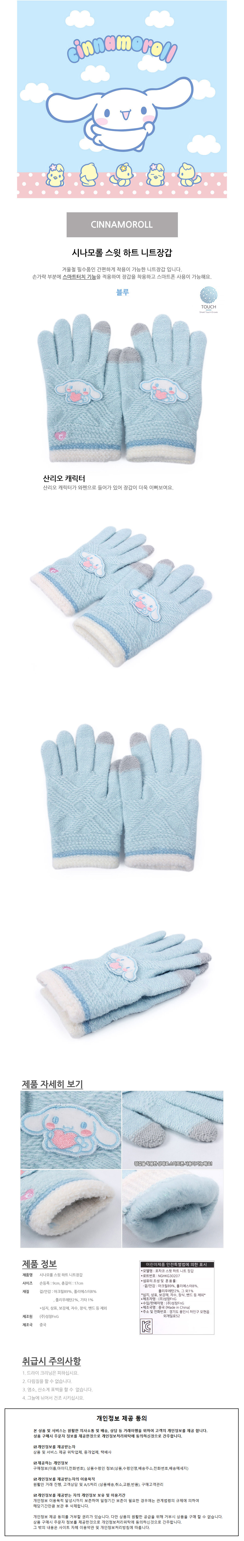 성창 장갑 시나모롤 스윗하트 니트 아동장갑 방한장갑