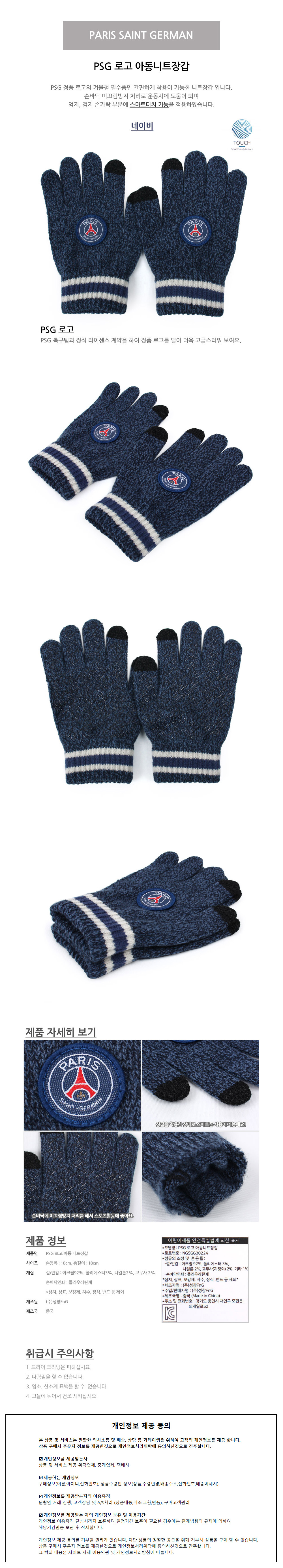 성창 장갑 PSG 로고 아동 니트 아동장갑 방한장갑