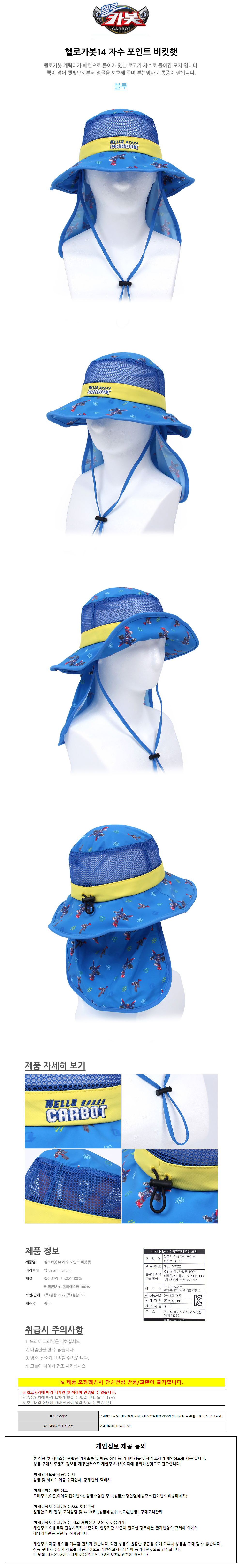 성창 아동모자 헬로카봇14 자수포인트 버킷햇 (블루)