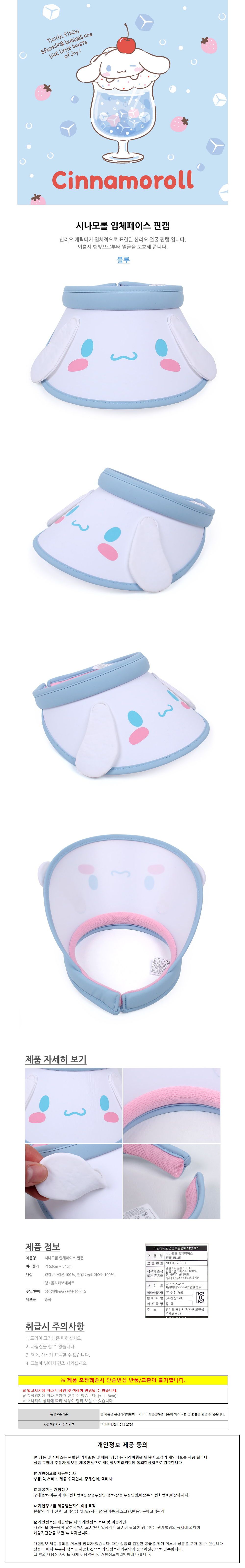 성창 썬캡 시나모롤 입체 페이스 핀캡