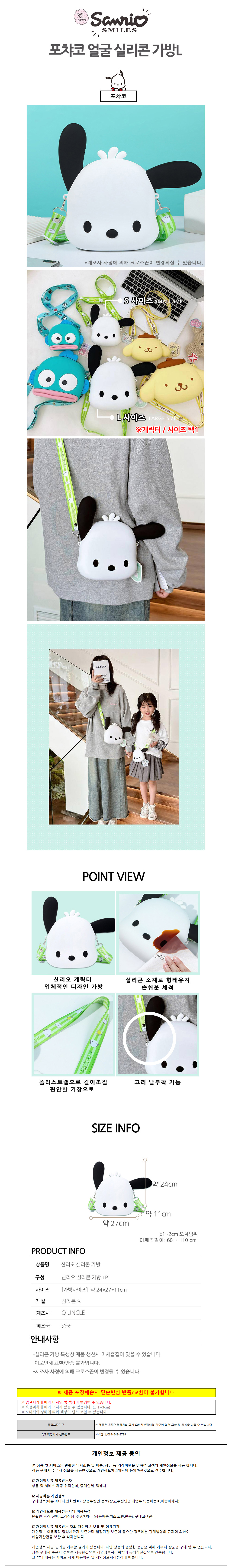 나라 아동가방 포차코 실리콘 얼굴 가방 (L)