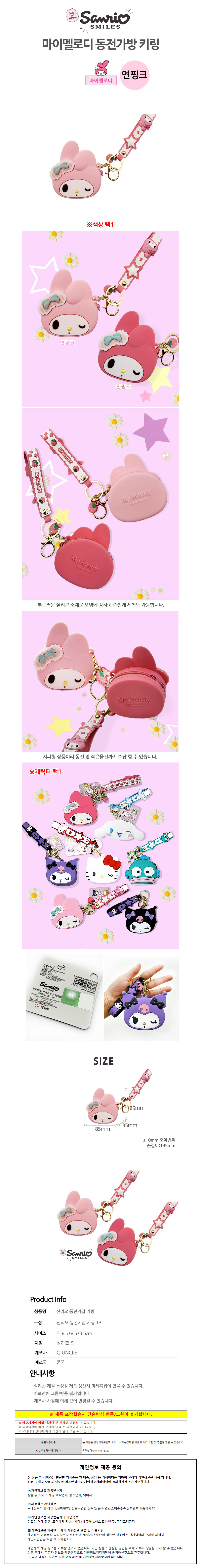 나라 동전지갑 마이멜로디 동전 가방 키링 (연핑크)