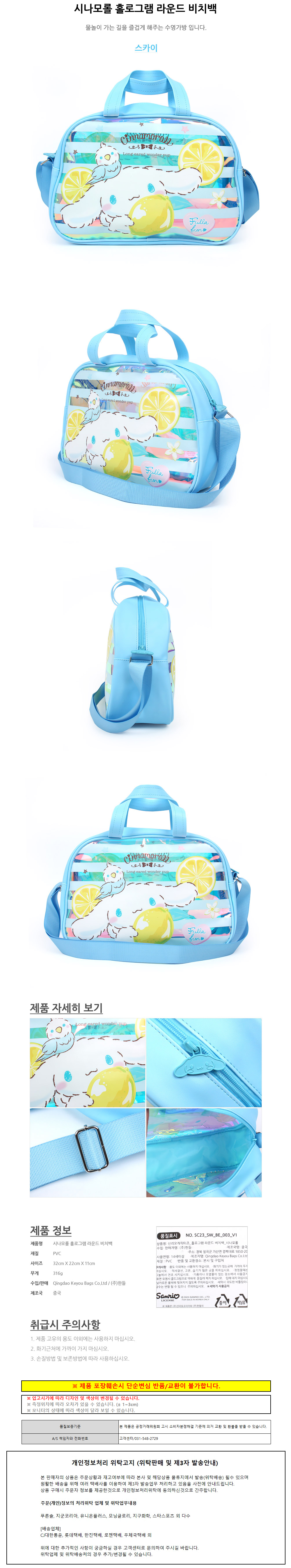 한들 시나모롤 홀로그램 라운드 비치백