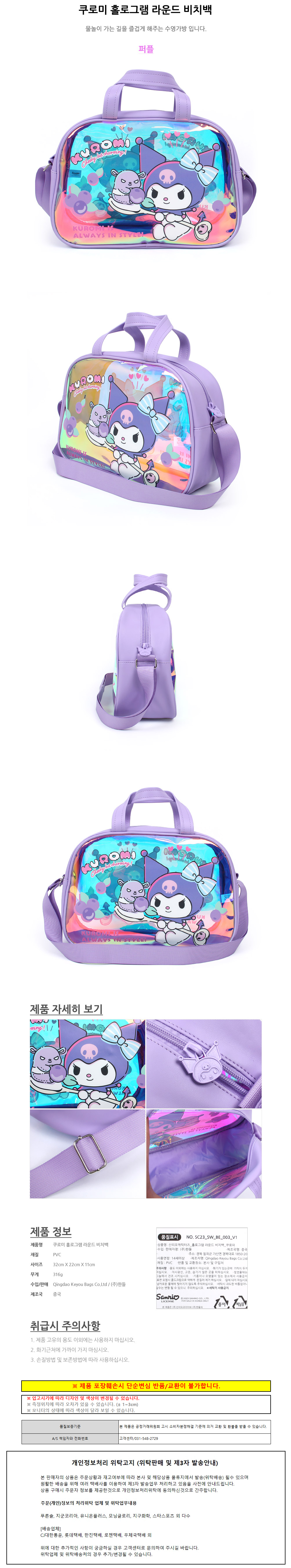 한들 쿠로미 홀로그램 라운드 비치백