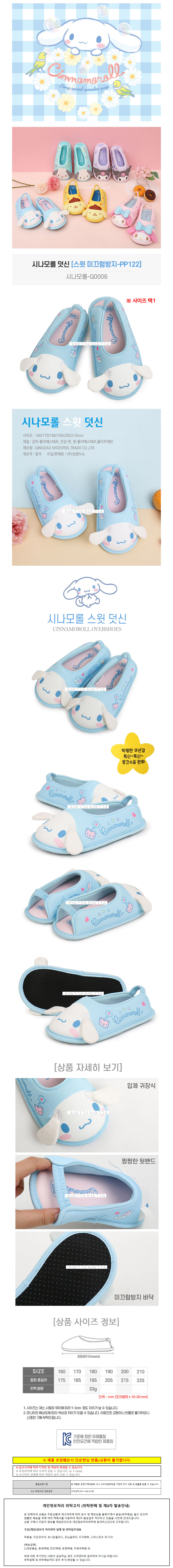 성창 시나모롤 스윗 미끄럼방지 덧신 (택1)