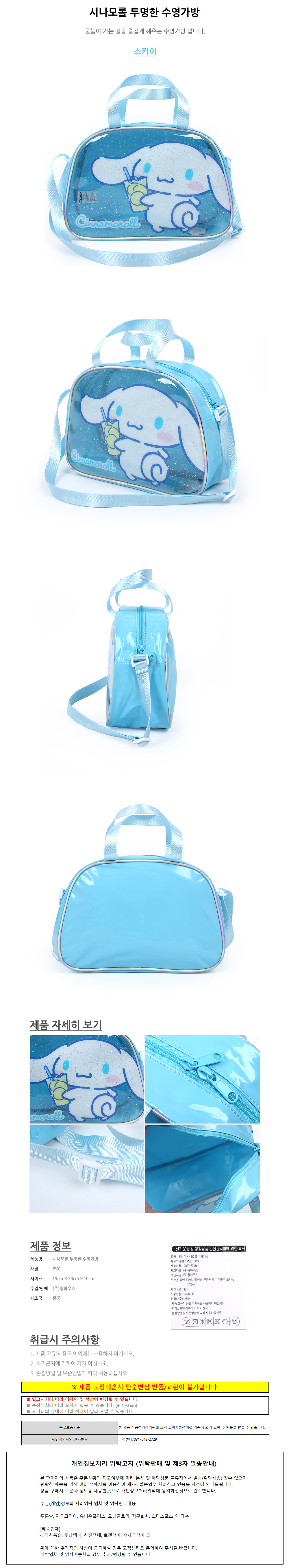 윙하우스 시나모롤 투명한 수영 가방