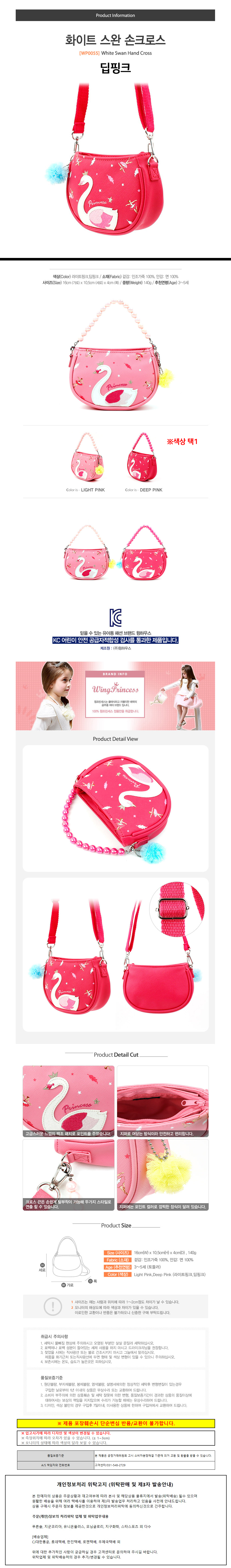 윙하우스 화이트 스완 아동 손 크로스백 (딥핑크)