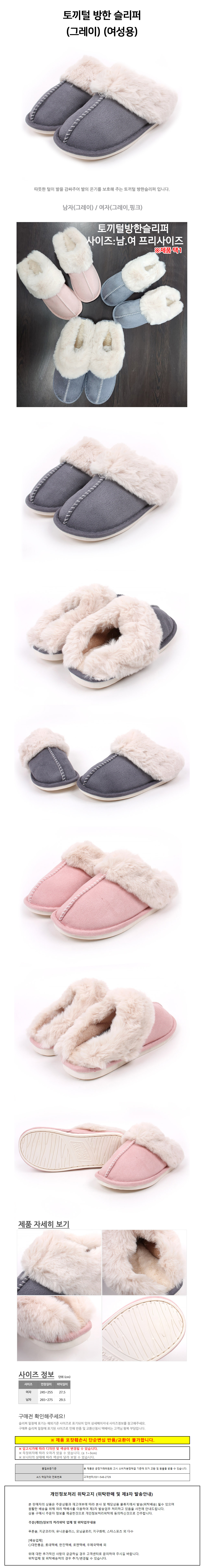 나라 토끼털 방한 슬리퍼 (그레이) (여성용)