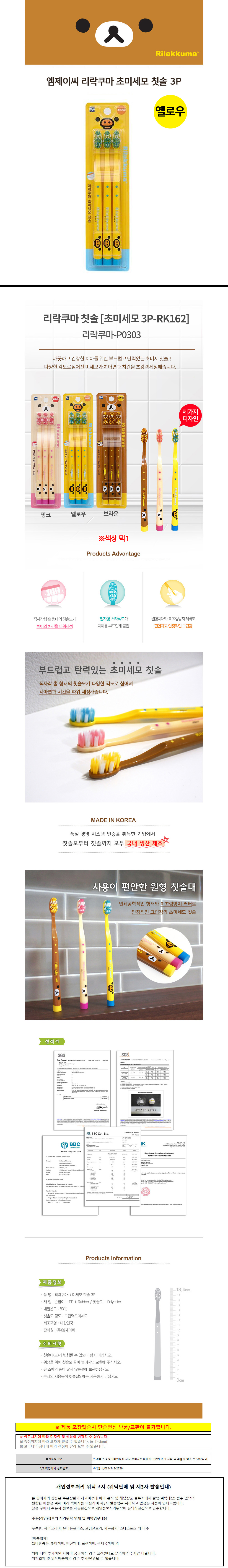 엠제이씨 리락쿠마 초미세모 칫솔 3P (옐로우)