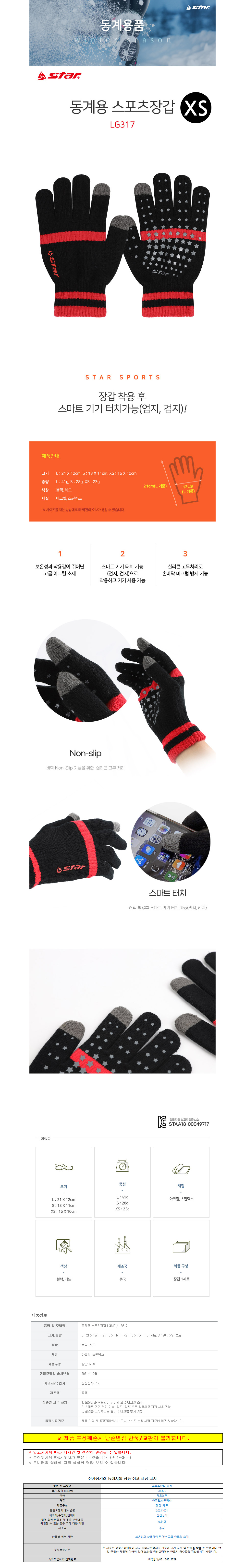 스타스포츠 동계용 스포츠 장갑 (XS) (LG317)