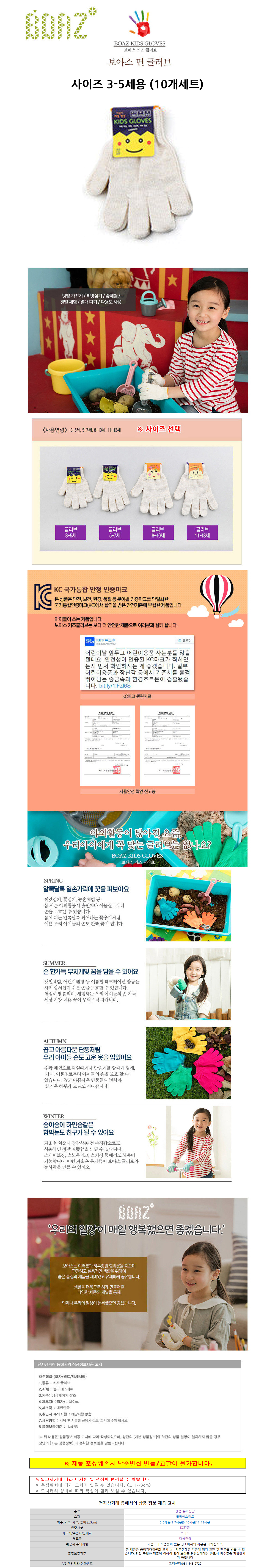 보아스 어린이 체험장갑 10개세트 (면장갑) (사이즈 3-5세용)