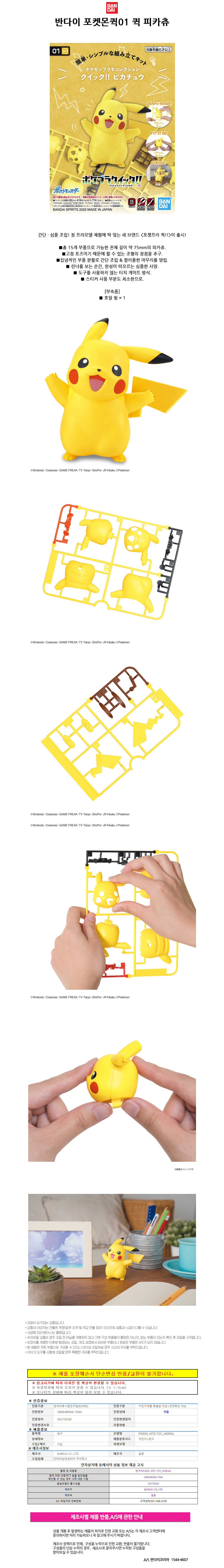 반다이 (포켓몬퀵01) 프라모콜렉션 퀵 피카츄 (BD5060117)