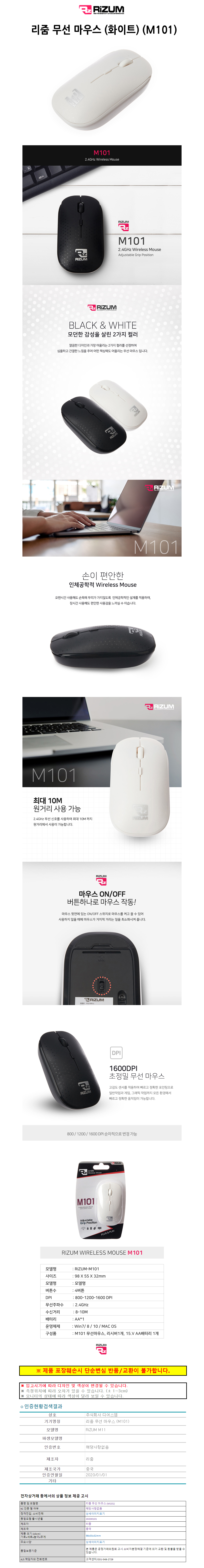 리줌 무선 마우스 (화이트) (M101)
