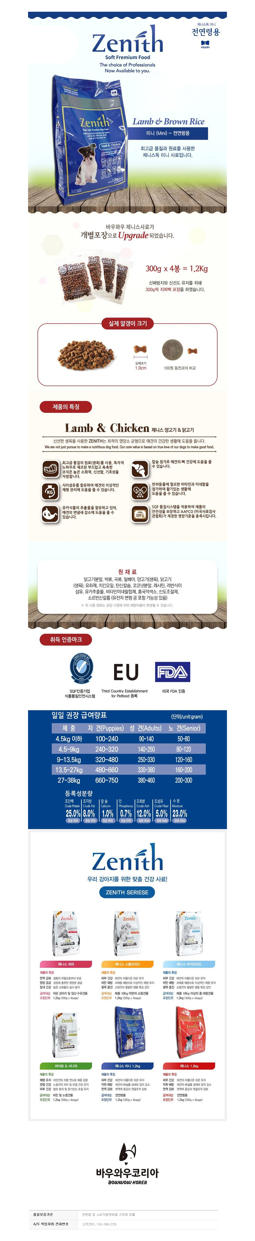바우와우 제니스 블루 작은알갱이 사료 (양고기.쌀습식) (1.2kg)