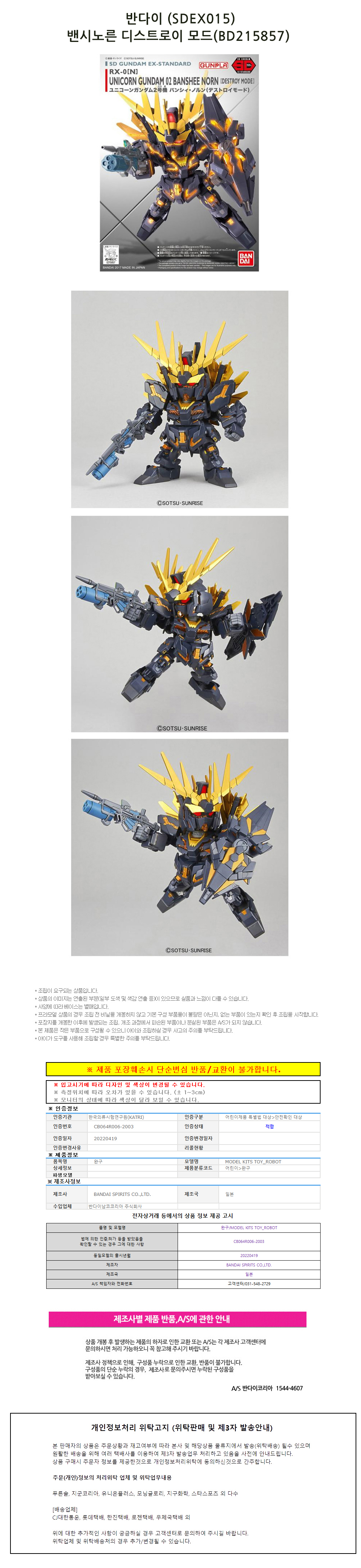 반다이 (SDEX015) 밴시노른 디스트로이 모드 (BD215857)