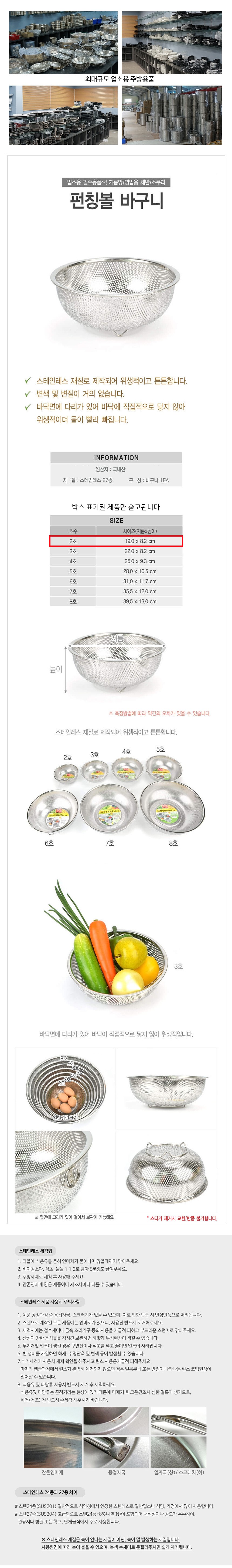 스텐 원형 펀칭볼 타공바구니 채반 2호 19cm