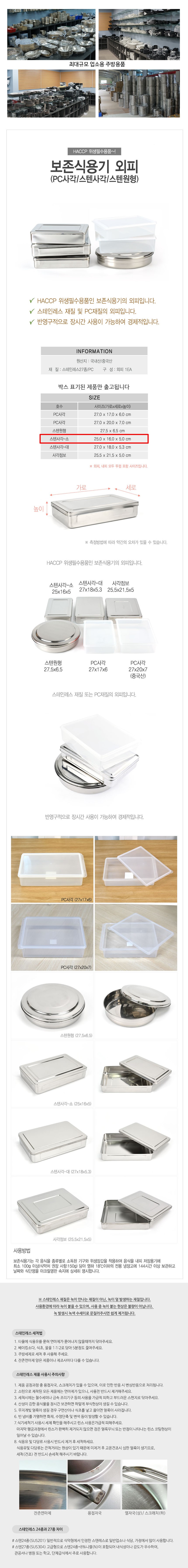 스텐 사각 보존식용기 외피 소형 25x16cm