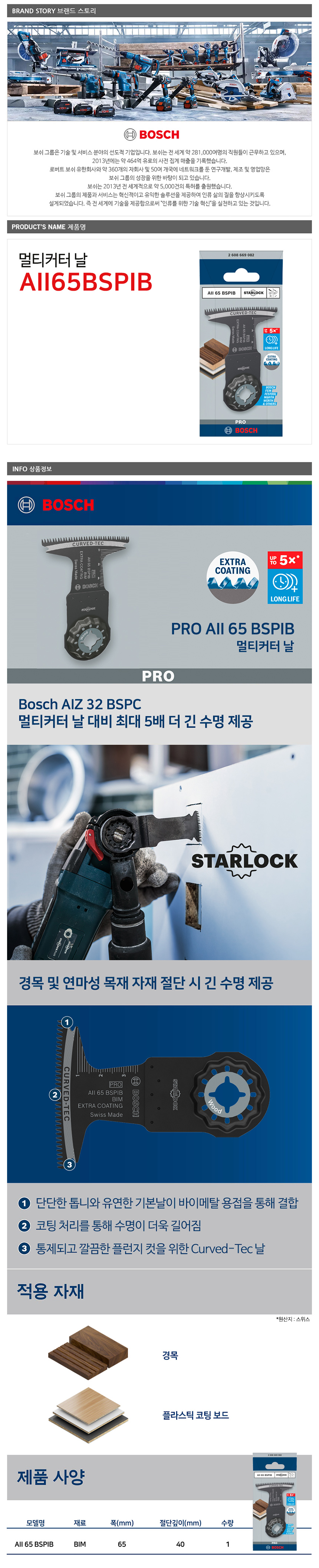 보쉬 PRO AII65BSPIB 목재용 만능컷터날 65mm 1P