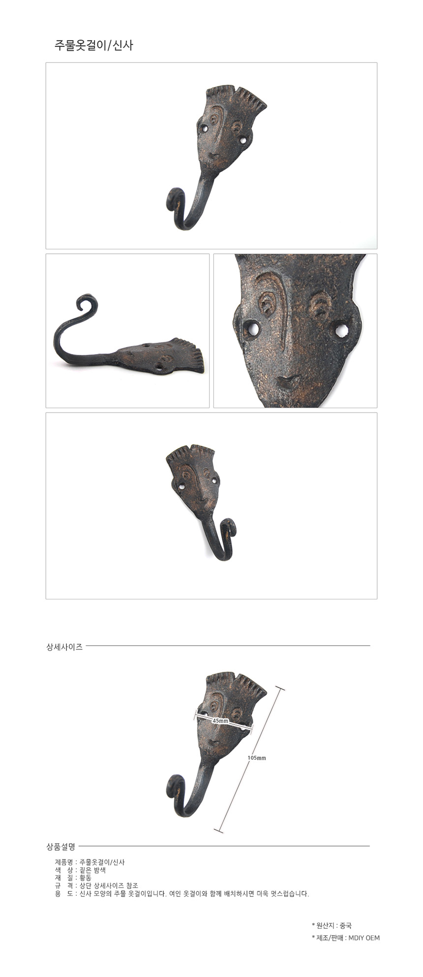 인테리어 신사 주물 옷걸이 가구장식