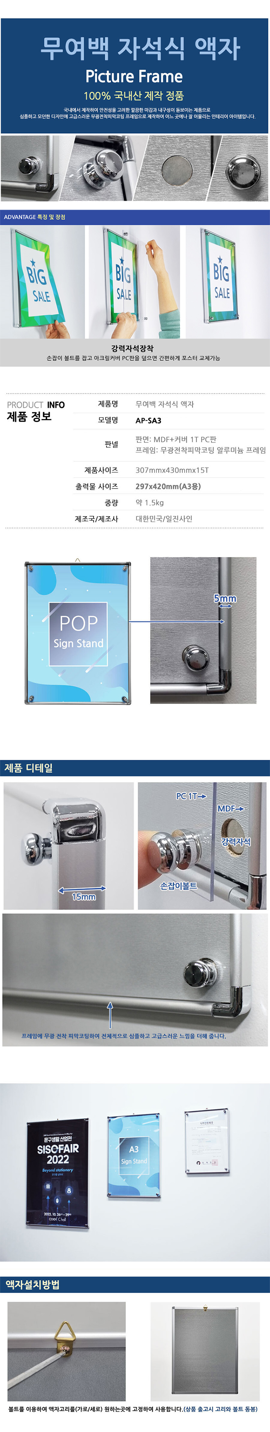 무여백 자석식 A3 액자 AP-SA3