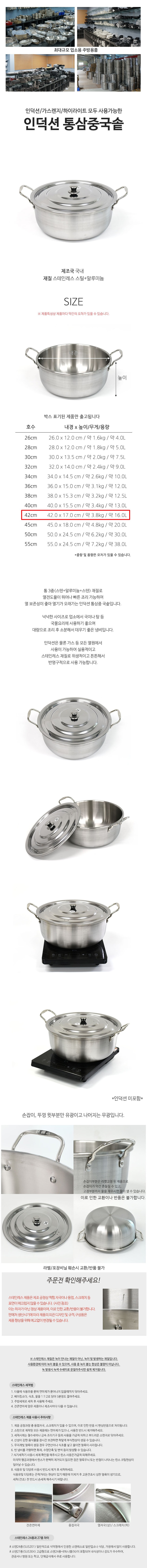 인덕션가능 통삼중 스텐 양수 대형 국솥 42cm