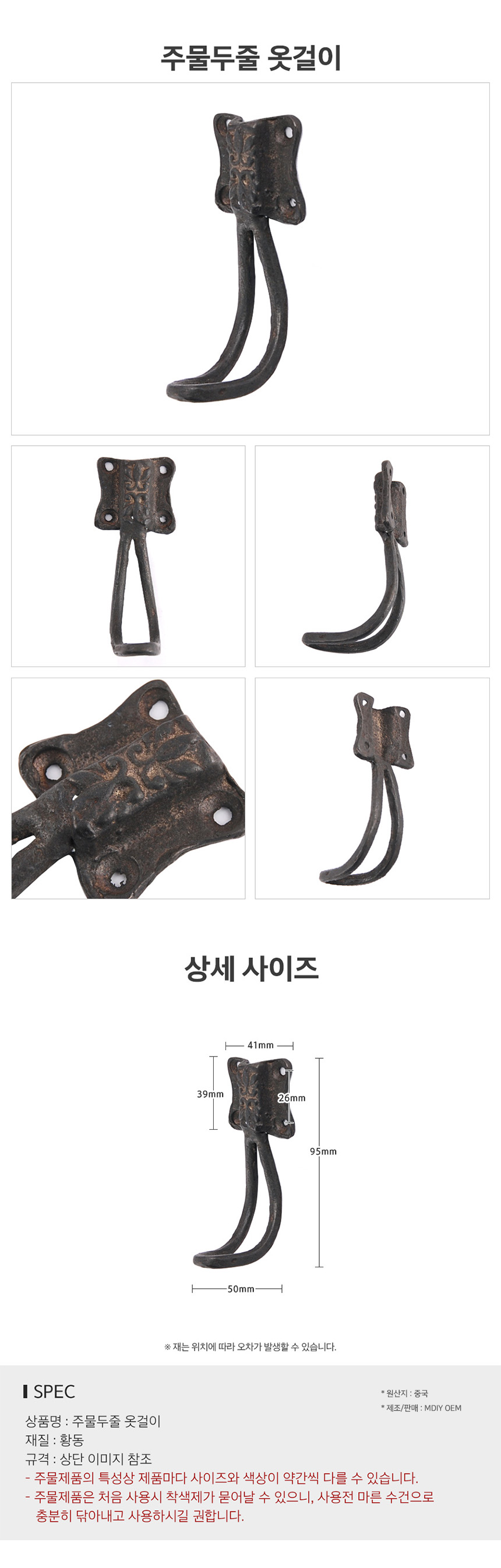 인테리어 두줄 주물옷걸이