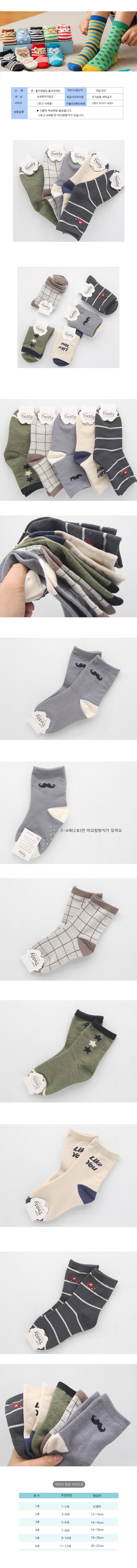 제이트 아동양말 중목 5켤례 3-4세용