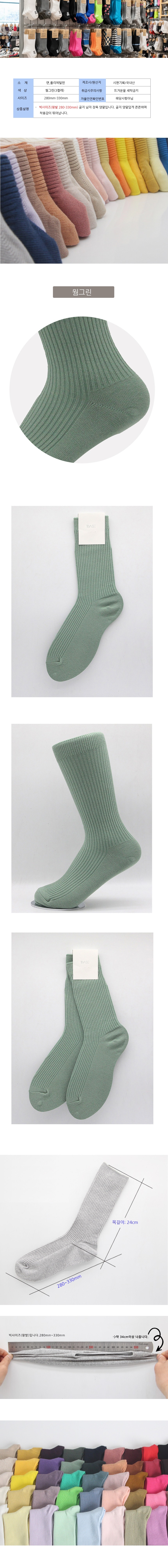 남성 빅사이즈 가는골지 장목양말 웜그린 3켤레