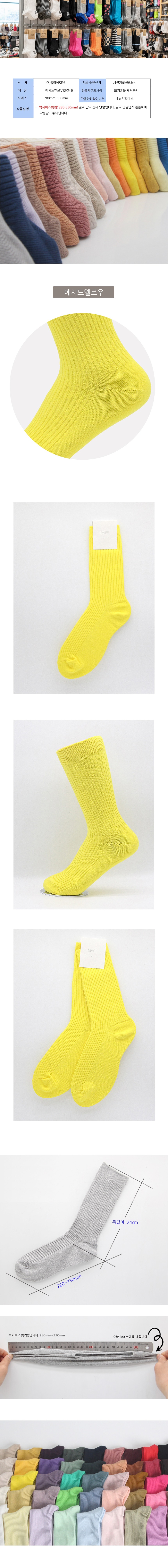남성 빅사이즈 가는골지 장목양말 애시드옐로우 3켤레