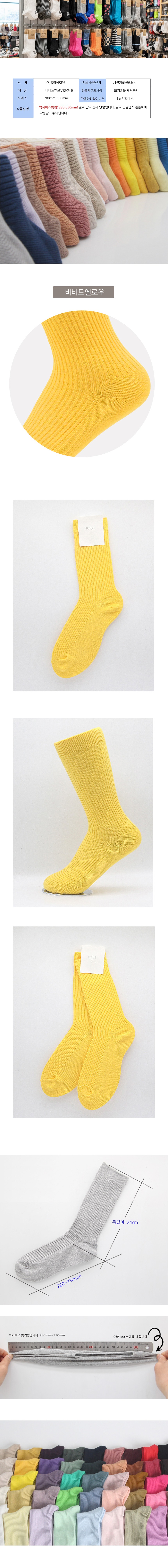 남성 빅사이즈 가는골지 장목양말 비비드옐로우 3켤레