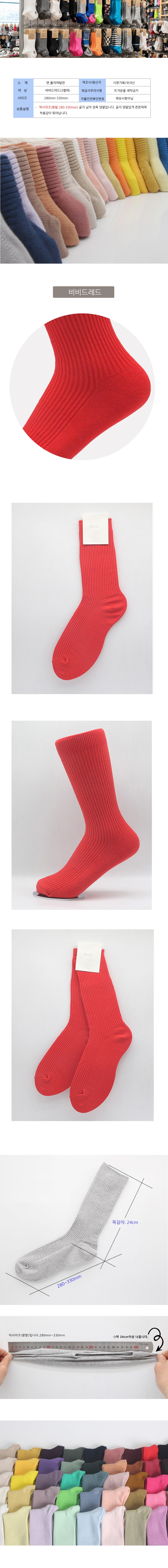 남성 빅사이즈 가는골지 장목양말 비비드레드 3켤레