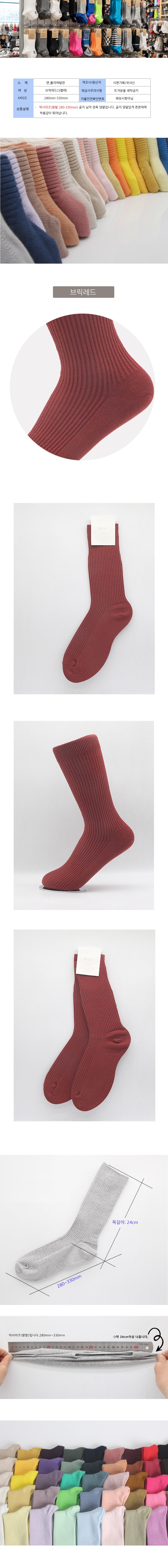남성 빅사이즈 가는골지 장목양말 브릭레드 3켤레