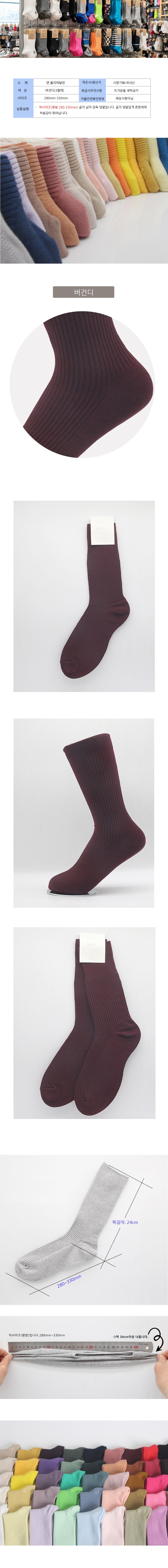 남성 빅사이즈 가는골지 장목양말 버건디 3켤레