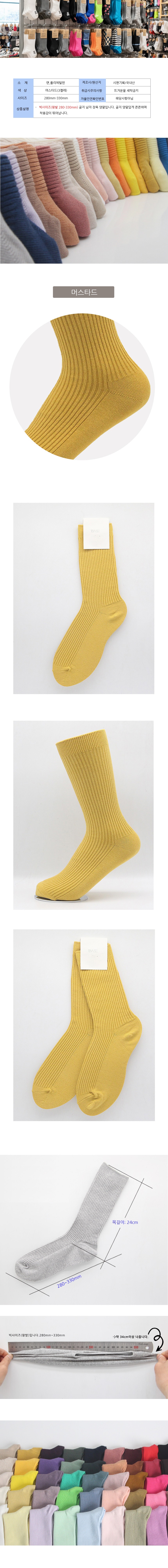 남성 빅사이즈 가는골지 장목양말 머스타드 3켤레